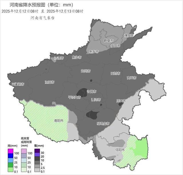 主要雨雪时段:明天。预计全省都将出现雨雪天气,黄河以北和三门峡、洛阳、郑州、开封、许昌、平顶山北部是降雪核心区域,将出现中到大雪,局部暴雪!南阳、信阳等地由于气温相对较高,遇见纯雪的概率较低,以小雨或雨夹雪为主。其余大部雨夹雪转中到大雪,局部暴雪。