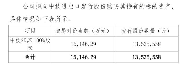 拟1.51亿购买中技江苏100%股权